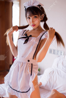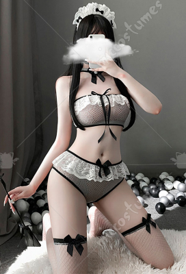 Women Sexy Cute Maid Style Lace Decorated Backless Dress Set Nightwear Costume Outfit