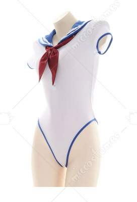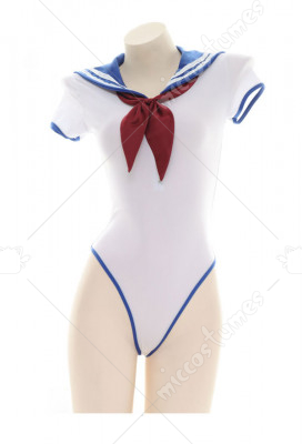 Sexy See Through Sailor Uniform Swimwear Japanese Style High Cut One Piece Sleepwear with Tie