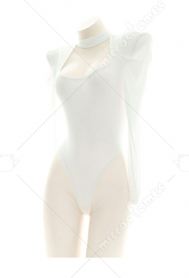 Sexy One Piece Chest Open Japanese Style Long Sleeves Bodysuit Sleepwear Sweater High Cut Homewear