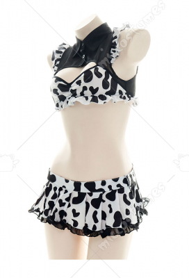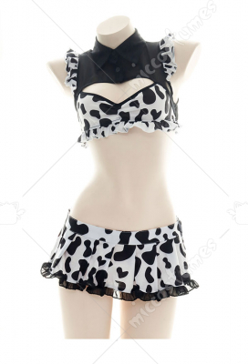 Sexy Chest Hallow Milk Cow Pattern Decorated Underwear Pajamas Sexy Super Short Maid Two-Piece Lingerie Nightdress
