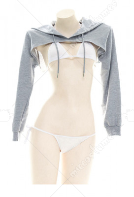 Super Short Hoodie Long Sleeves Sexy T Shirt Crop Top Hooded Lingerie Costume