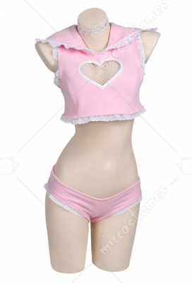 Sweet Heart Baby Cute Heart Shape Hollowed Pink Two Piece Bikini Set