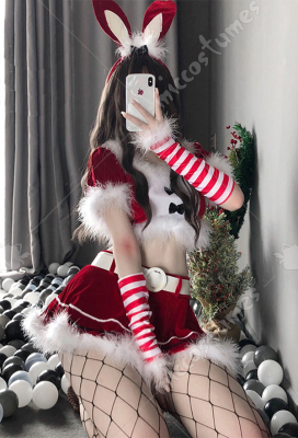 Weisgirl Sexy Christmas Bunny Girl Cosplay Bow Decorated Costume Outfit