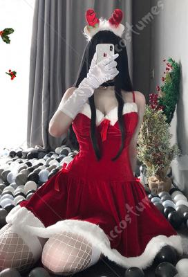 Weisgirl Cute Christmas Sexy Hollowed Deep V Dress Costume Outfit