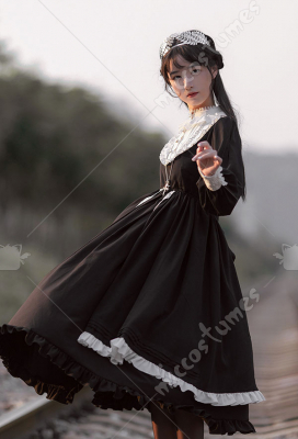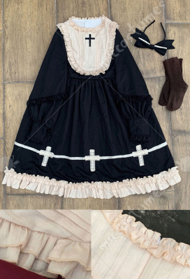 With Puji Classic Vintage Elegant Return to Nothing Removable Small Stand-Up Collar Small Waist Double Layer Big Hem Nun Style OP Lolita Lace Daily Dress Outfit for Autumn