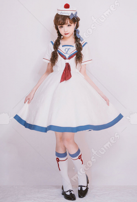 Lullaby Peace Dove Sailor Collar Navy Waist Style Sweet White Lolita OP Daily Dress Outfit with Tie