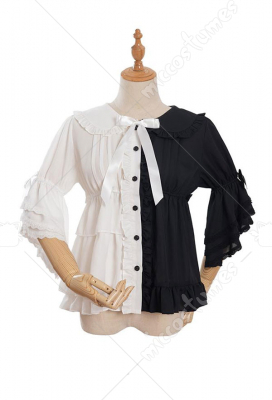 Magical Tea Party Chocolate Bunny Cute Red and Black Contrast Doll Collar Short Sleeve Lace Inner Shirt Blouse Lolita Outfit