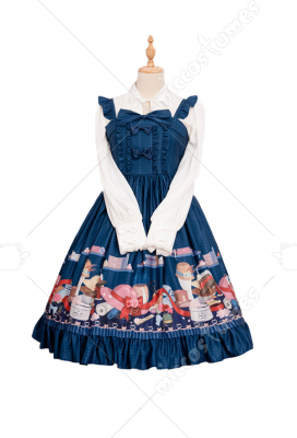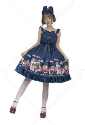 Sweet Lolita Maiden JSK Hat Patterns Printed Ruffle Lolita Dress for Winter