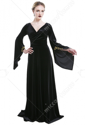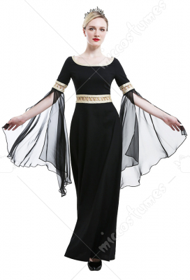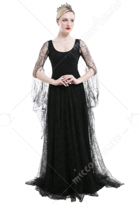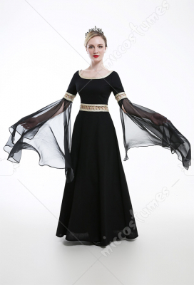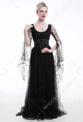 Medieval Costume Handmade Gothic Dark Witch Dress with Lace Sleeves