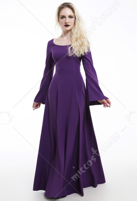 Medieval Costume Handmade Gothic Dark Witch Dress Retro Purple Gown