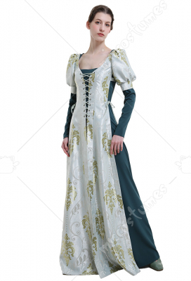 Medieval Renaissance XVI Century Costume Handmade German Style Lace-up Dress with Hollowed Sleeves