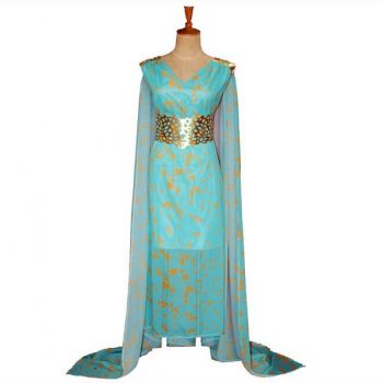 Game of Thrones Daenerys Targaryen Blue Cape Cosplay Costume Dress Set