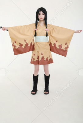 Naruto Hyuuga Hanabi Cosplay Costume Printed Kimono with Hair Bow-tie