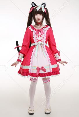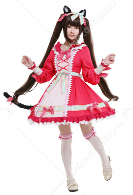 Sold Out Nekopara Vol. 4 Chocola Catgirl Cosplay Costume Sweet Lolita Long Puff Sleeve Round Collar Ruffled A Line Dress Full Set with Hair Accessories Choker Tail Socks