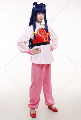 Ranma ½ Shampoo Cosplay Costume Chinese Element Cheongsam Style Stand Up Collar Long Sleeve Shirt Tube Top Outfit with Pants and Hair Clip