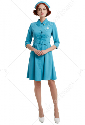 Ratched Nurse Uniform Dress Cosplay Costume with Nurse Hat and Belt