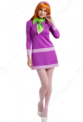 Scooby-Doo Daphne Blake Dress Cosplay Costume with Scarf and Stockings