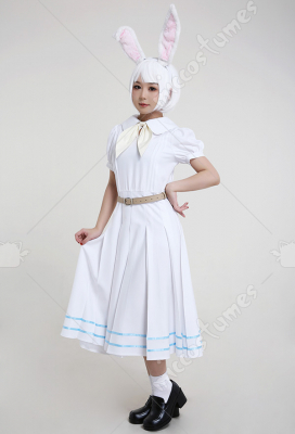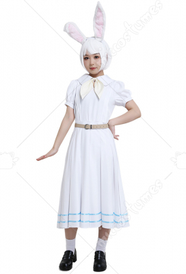Beastars Haru Miss Rabbit School Uniform Puff Sleeve White Dress Cosplay Costume Woman Full Set with Bow and Belt