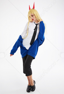 Chainsaw Man Power Cosplay Costume Hooded Sweater Coat Shirt Trousers Cosplay Outfits with Tie Headband