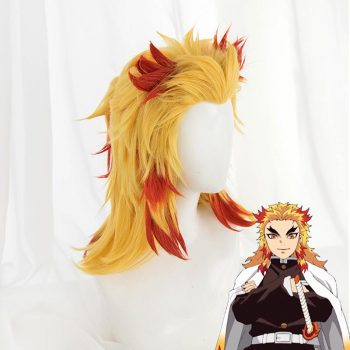 Demon Slayer Kimetsu No Yaiba Rengoku Kyoujurou Cosplay Wigs Ponytail Red and Yellow cp05672