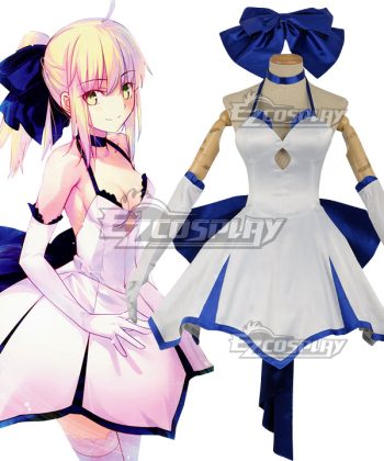 Fate Extella Saber Artoria Pendragon King Arthur Blue Evening Dress Cosplay Costume