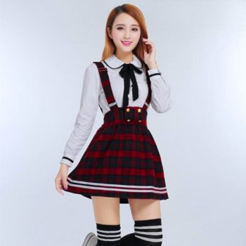 Japanese School Uniform for girls Students Class Sweet Clothes Plus size Navy Straps skirt +White Shirt +Stocking 3 Pcs / Set