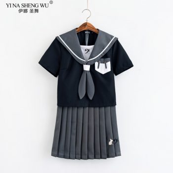 Japanese School Uniform Sailor Shirt Skirt Set Bad Girl Doll Black Gothic Solid Color Pleated JK Suit High School Student Outfit