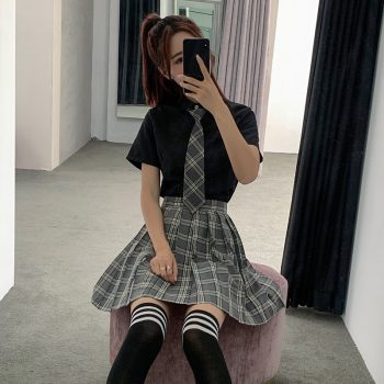 School Dresses For Girls Black Shirt With Tie Short-sleeved Navy Sailor Suit Large-size S-3XL Anime Form High School Jk Uniform