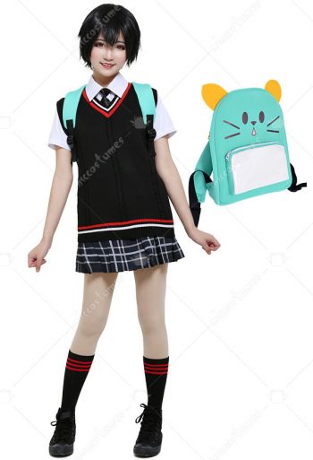 Peni Parker Penny Parker Cosplay Costume School Uniform Dress Inspired by Into The Spider-Verse with Backpack