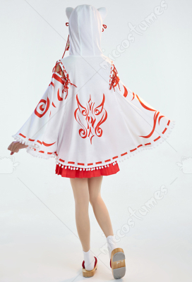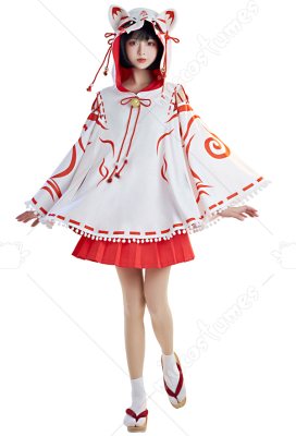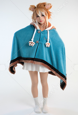 Kawaii Mask Fox Style Cloak Fringed Short Hooded Poncho Wrap with Tail and Bow