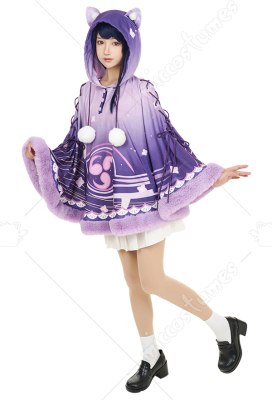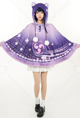 Genshin Impact Raiden Shogun Derivative Cape Kawaii Purple Floral Pattern Fox Ears Hooded Cloak