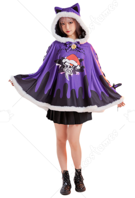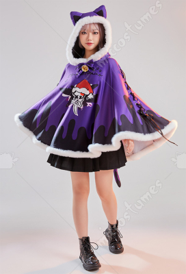 Christmas Hooded Cloak Gothic Pattern Poncho Purple Cape Coat for Women