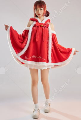 Christmas Hooded Cloak Red Poncho Cape Batwing Sleeve Coat for Women