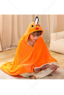 Pochita Derivative Kawaii Warm Cloak Plush Blanket Shawls Velvet Hooded Cape