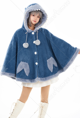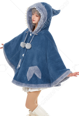 Women Hooded Cloak Blue Shark Poncho Cape Coat