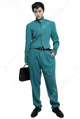 Sold Out Yu Yu Hakusho Yusuke Urameshi Cosplay Costume Stand Collar Button Up School Uniform Style Green Outfit with Belt Pants