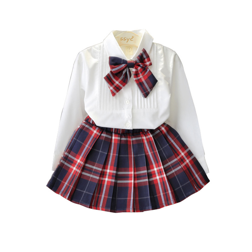 90-130cm Children British Style School Uniform for Kids Girls White Blouse Red Plaid Skirt Set Choir Performance Dance Costumes