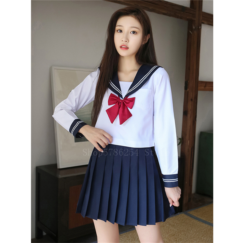 Sailor Dress Suit Girls Japanese Korea Style Jk School Uniform Short&Long Sleeve Hell Pleated Skirt Academy Anime Kawaii Cosplay