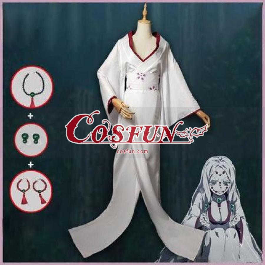 Anime Demon Slayer: Kimetsu no Yaiba Spider Mother Rui Kimono V-neck Women Cosplay Costume Dress Belt Accessory