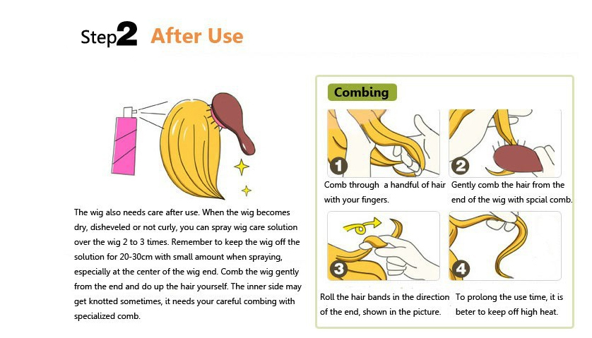 3. When you comb the wig, please use the steel comb and wig nursing liquid , so that the wig will be smooth and soft.