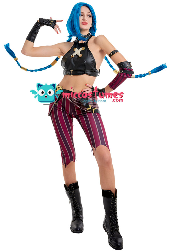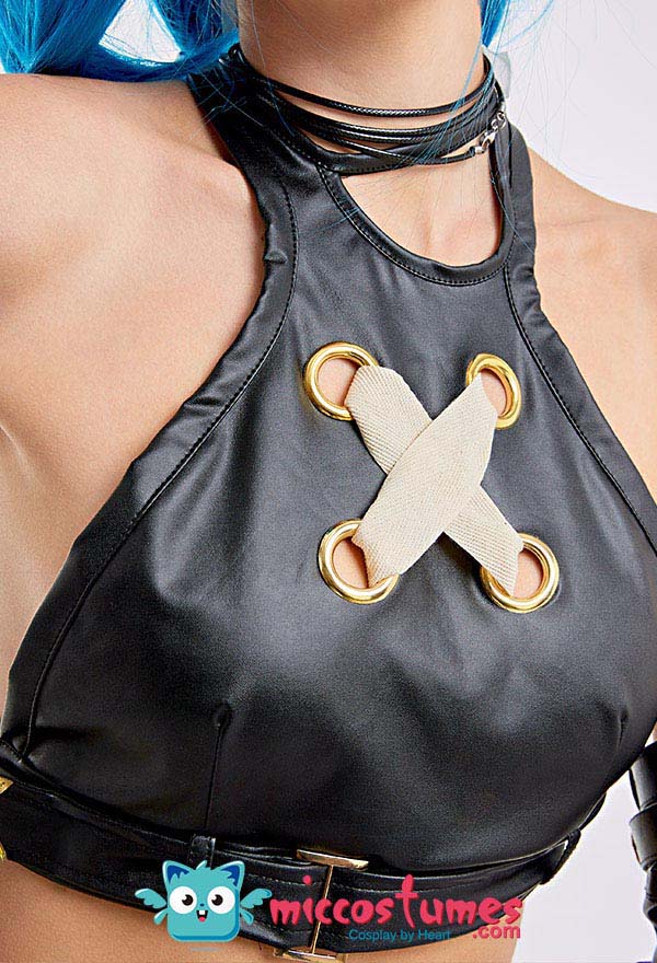 Metal leather and elastic leather are largely used in producing this costume to make it more similar to that of the original role. The top is made of black matte leather. The pants are made of printed satin fabric. It can be washed and its color will not run in the wash. The belt is provided with many rivets to make it better designed. This costume comes with all necessary accessories such as wrist accessory and neck accessory. The top collar is provided with a velcro design to make it easier to put on and take off. The pants are of an elastic design.