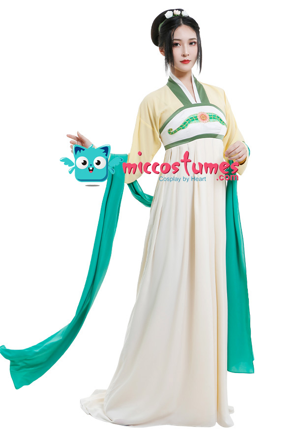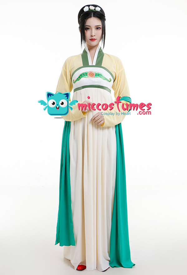 • Design Details: Combined with some elements of Han dynasty, the designer produce this dress. Chiffon is light and soft, so it is selected as the main material. On the chest part of the dress, the embroidery is exquisite.