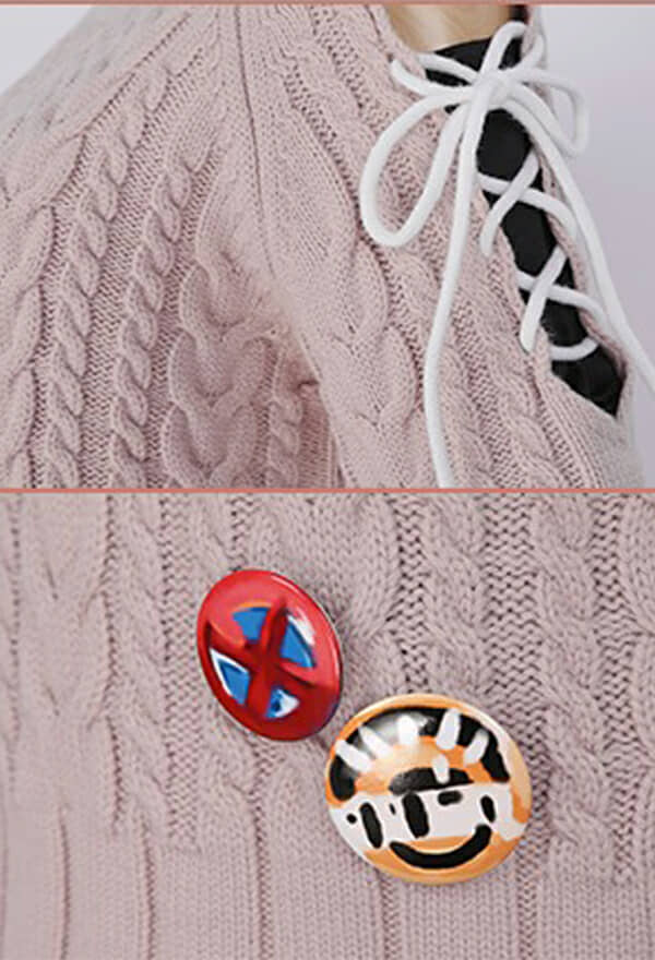 The costume includes sweater, skirt, stockings, emblem*2. It is made of knitted fabric.