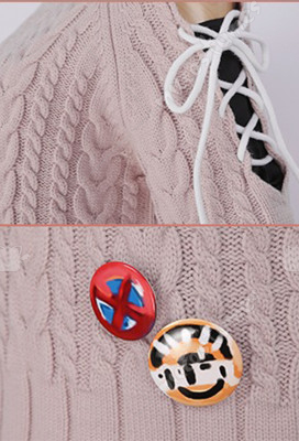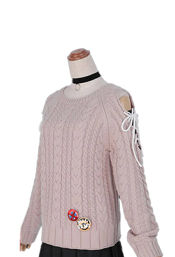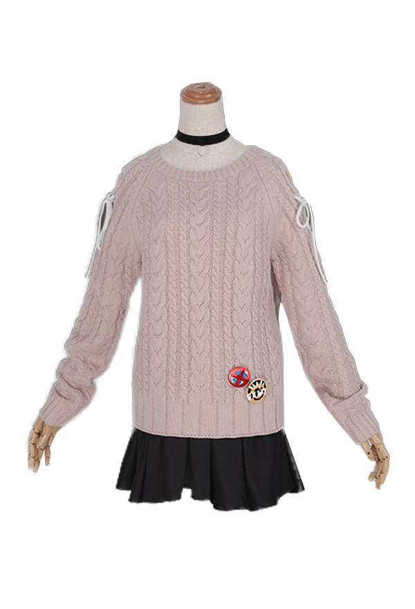 The costume includes sweater, skirt, stockings, emblem*2. It is made of knitted fabric.