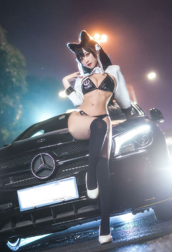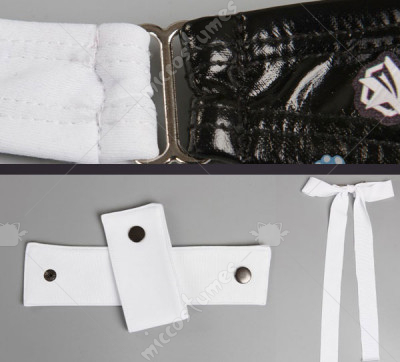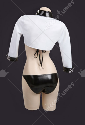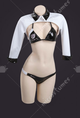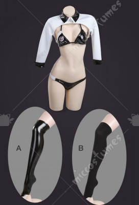 The costume includes bikini top, bikini briefs, wristband*2, coat, bowknot, leather stockings, stockings. It is made of chinlon. Please note whether you choose 68cm stockings or 78cm stockings.
