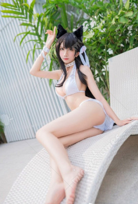 The costume includes bikini top, briefs, sheer skirt, hair clip*1, wristband*1. It is made of chinlon. It has no chest pad.