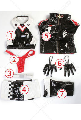 | Included Items | top, coat, thong, hip skirt, gloves*2, belt, leg socks |