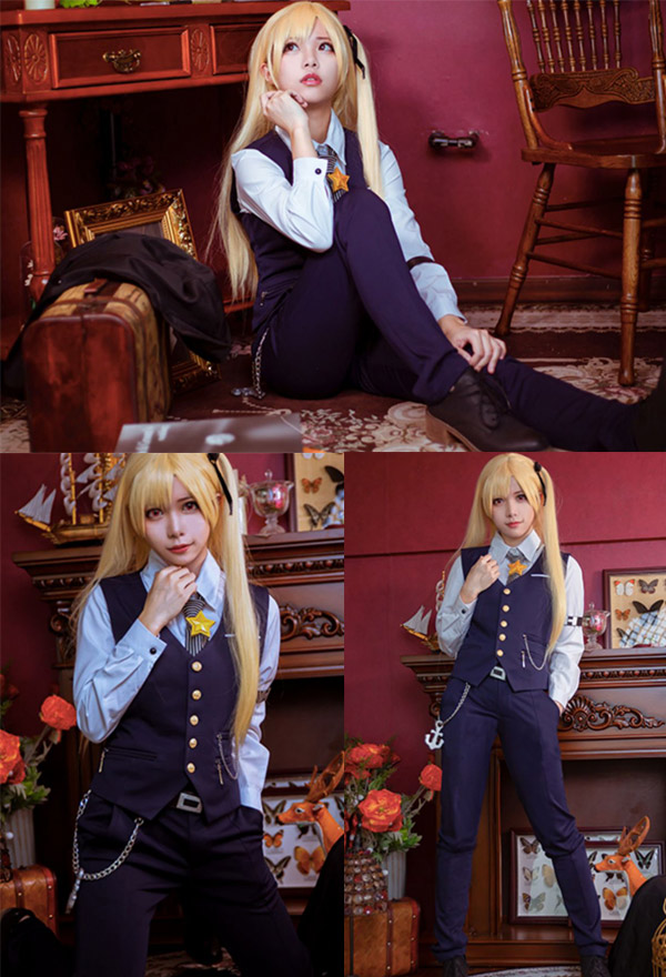 Included Items Head accessory, shirt, vest, tie, tie ddecoration*1, tie clip, arm ring, waist chain accessory, pants, pants chain accessory, coat