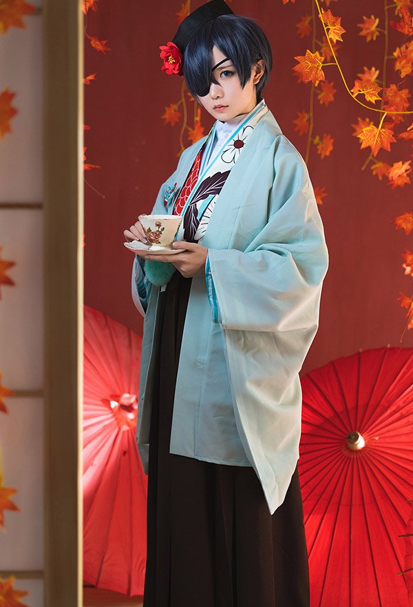 The costume includes coat, inner coat, shirt, pants, hat, pompon decoration*1. It is made of polyester fibre.