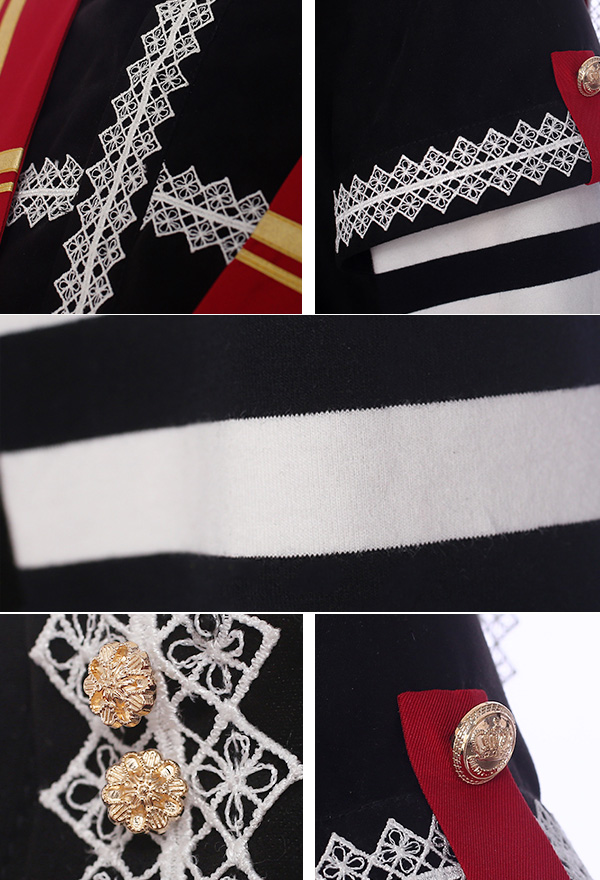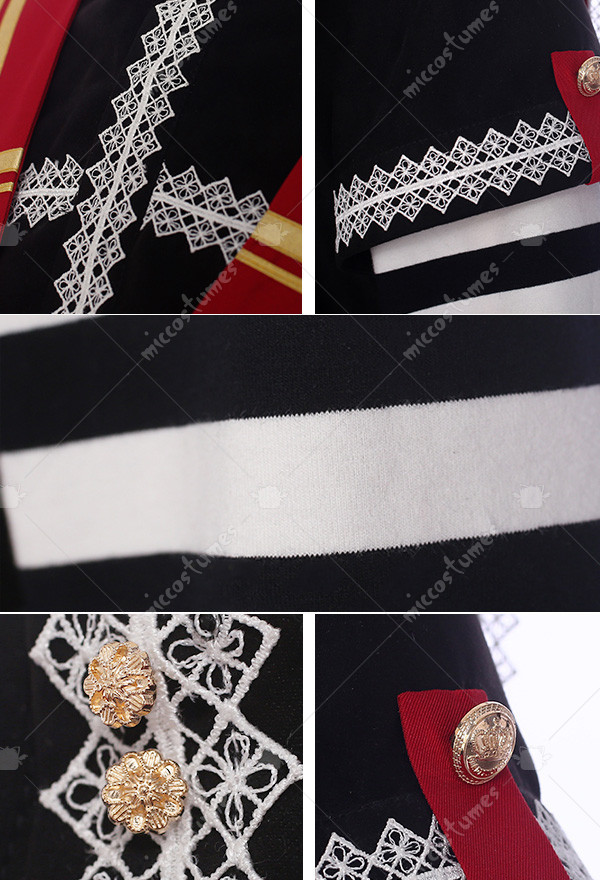 The costume includes top, pants, fake collar, belt*2, hat, sock*1, eyepatch. It is made of uniform cloth, embroidery.